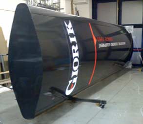 Fase finale di costruzione Totem Pubblicitario Luminoso, realizzato in alluminio con telaio in acciaio zincato, illuminazione con tecnologia Led.